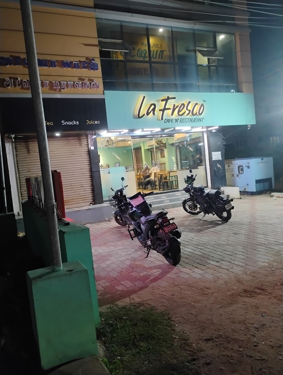 Welcome to La Fresco, a charming cafe nestled in the heart of Karaikudi, Tamil Nadu. Located at 146/2, Atchaya Tower, near Suganya Gym, this inviting spot is quickly becoming a local favorite thanks to its delightful array of cakes, pastries, and snacks that cater to the sweet and savory cravings of every diner.